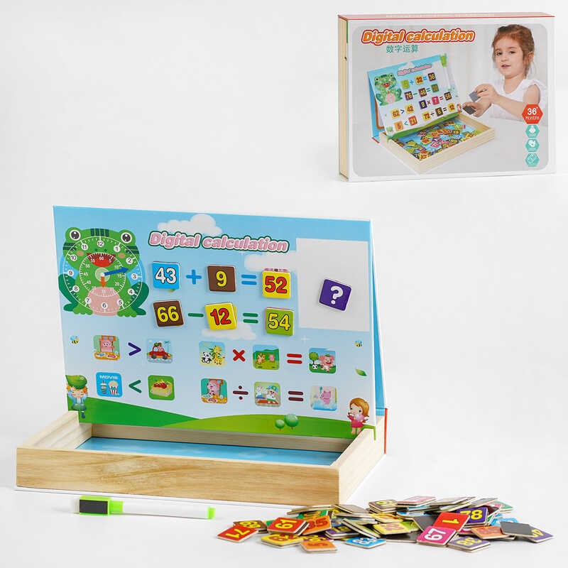 Деревянная игрушка: математические задания, магнитная доска, "пиши-вытирай" (C 54504)