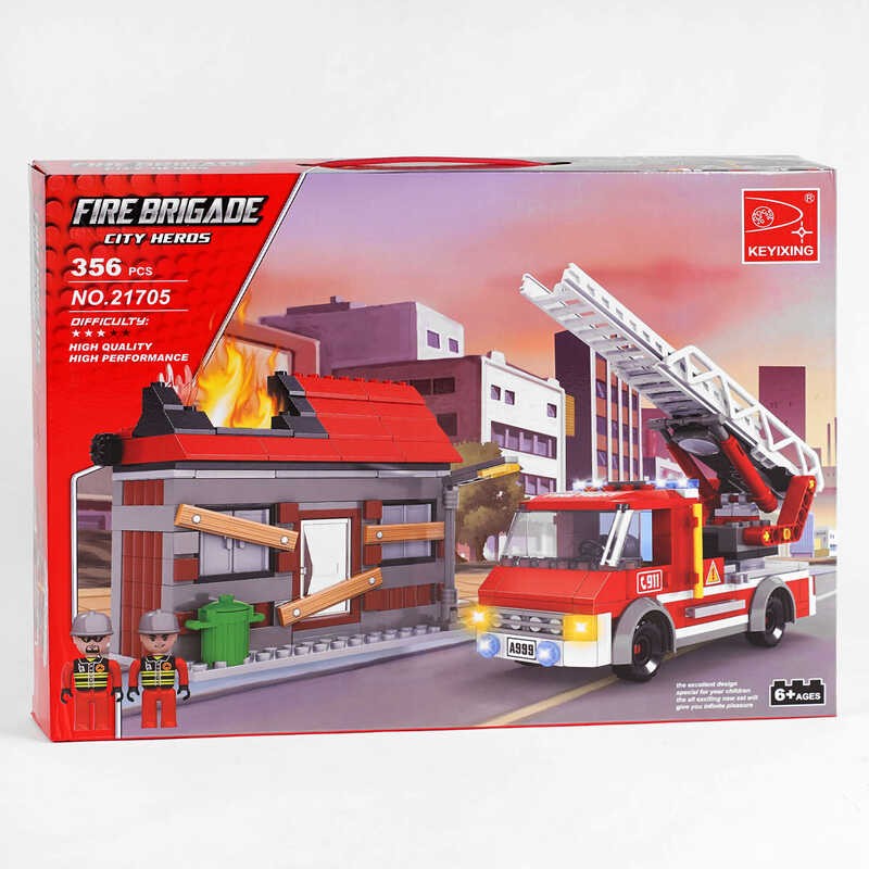 Количество элементов может изменяться изготовителем. Тематика – пожарная бригада; Серия – Fire Brigade; Количество деталей – 356; Тип крепежа – пазовый; Размер деталей – стандарт; Минимальный возраст – 6 лет; Герои в наборе – 2 спасателя. ⠀ Почувствуйте себя смелым спасателем и возглавьте настоящую пожарную бригаду с конструктором 21705! В набор входит 356 деталей, из которых ребенок сможет собрать настоящую пожарную машину, оборудованную по последнему слову науки и техники! Модель данной спецтехники выкрашена в характерный красный цвет с наклейками и надписями по всему корпусу. На крыше служебного транспорта установлена телескопическая лестница для предотвращения пожара в труднодоступных участках. Особенности: - отличная детализация и движущиеся элементы; - вся техника окрашена в сигнальный красный цвет; - все игровые элементы изготовлены из первичной пластмассы; - современная комплектация для разыгрывания увлекательных ролевых сюжетов; - уровень сложности – 3. * Характеристики и комплектация товара могут изменяться производителем без уведомления">Количество элементов может изменяться изготовителем. Тематика – пожарная бригада; Серия – Fire Brigade; Количество деталей – 356; Тип крепежа – пазовый; Размер деталей – стандарт; Минимальный возраст – 6 лет; Герои в наборе – 2 спасателя. ⠀ Почувствуйте себя смелым спасателем и возглавьте настоящую пожарную бригаду с конструктором 21705! В набор входит 356 деталей, из которых ребенок сможет собрать настоящую пожарную машину, оборудованную по последнему слову науки и техники! Модель данной спецтехники выкрашена в характерный красный цвет с наклейками и надписями по всему корпусу. На крыше служебного транспорта установлена телескопическая лестница для предотвращения пожара в труднодоступных участках. Особенности: - отличная детализация и движущиеся элементы; - вся техника окрашена в сигнальный красный цвет; - все игровые элементы изготовлены из первичной пластмассы; - современная комплектация для разыгрывания увлекательных ролевых сюжетов; - уровень сложности – 3. * Характеристики и комплектация товара могут изменяться производителем без уведомленияХарактеристики