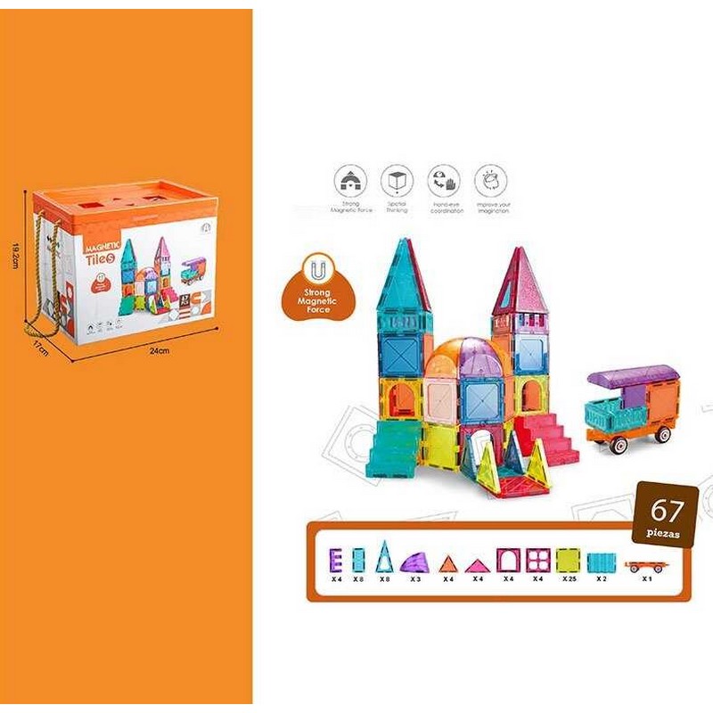 Конструктор CH 1132 (8) "Дом", магнитный, машинка, 67 деталей