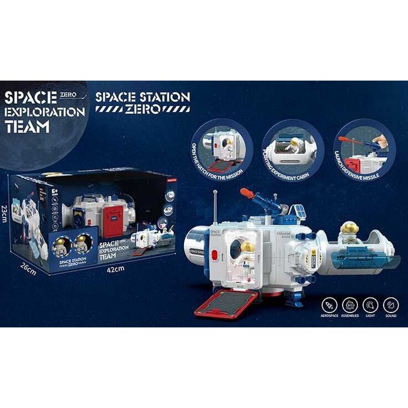 Космический набор K 04 (12) "Космическая станция ZERO", свет, звук, 2 космонавта
