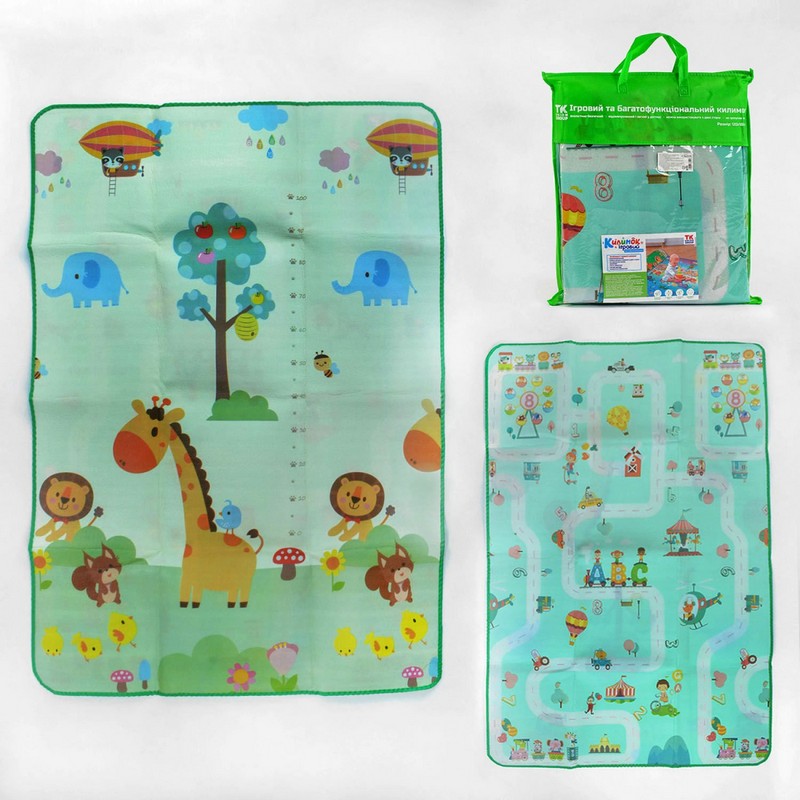 Двусторонний коврик С 36559 выполнен из современного синтетического материала на основе EVA-полимера, который характеризуется такими свойствами, как влагостойкость, эластичность, упругость, высокая износостойкость и малая теплопроводность. Материал не вызывает аллергии и не подвержен воздействию грибков и бактерий.Это означает, что коврик является идеальной игровой площадкой для детей: поверхность ковра смягчит удары при падении ребенка, защитит от холода, легко моется и не пропускает влагу. Края коврика обработаны специальной лентой из прочного материала.