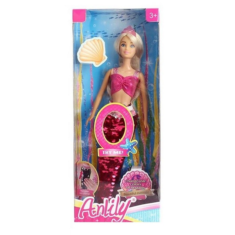Кукла русалочка 99241- это миловидная принцесса, которая дружит со всеми обитателями подводного царства. Длинные шелковистые волосы, выразительные глаза, блистательная лучезарная улыбка и роскошный чешуйчатый хвост покорит каждую маленькую девочку. Хвостик русалки съемный, выполнен из ткани и обшит сверкающими пайетками. Интересная особенность в том, что хвост с легкостью можно снять и подводная принцесса превратится в настоящую кукольную модель с длинными, красивыми ногами.