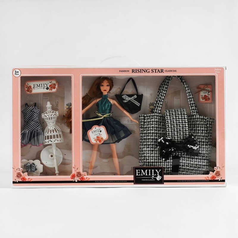 Посетите дизайнерское ателье вместе с Emily. Игрушка расскажет девочке о мире моды, продемонстрирует несколько стильных образов и подарит сумочку своей новой подруге, ведь настоящие подруги дадут прекрасный стильный совет и помогут пройтись по магазинам и выбрать что-нибудь новенькое и хорошее. Именно такой подругой станет эта красивая девочка! Она не только стильно одевается, но и имеет роскошные длинные волосы, с которыми можно будет создавать разные прически, а пока кукла будет менять утренний образ на вечерний, то одежду можно будет удобно разместить на манекене и не бояться, что платье станет мятой и потеряет свою красоту.Особенности: