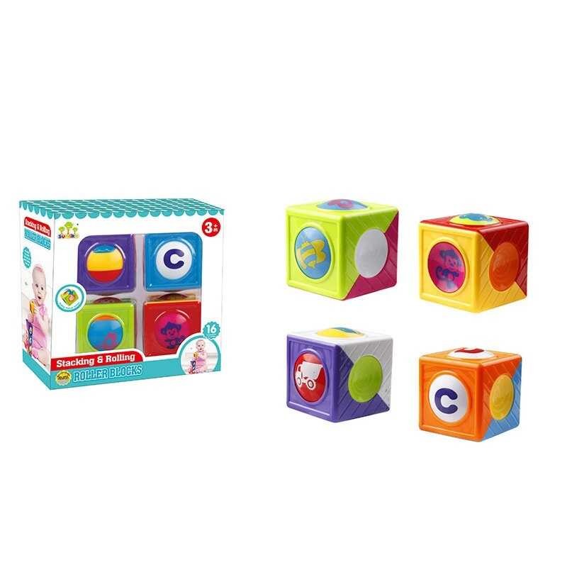 Увлекательная логическая игра SL 84837 поспособствует не только веселому времяпровождению, но также будет полезной для развития интеллектуальных способностей ребенка! Набор состоит из 4 разноцветных кубиков с роликовым шариком. Диаметр шара немного больше куба, поэтому его поверхность виднеется из круглых отверстий каждой стороны игрушки. Каждый шарик имеет разные иллюстрации, и при вращении мы можем наблюдать 4 милые картинки. Изображение каждого куба соответствует определённой тематике: животные, буквы, транспорт и насекомые. Две противоположные грани куба имеют полукруглую выемку, это позволяет ребенку строить разные конструкции из блоков с неровными гранями. Играя в такую захватывающую игру помогает развить мелкую моторику рук, тактильные ощущения, внимательность и интеллектуальные способности.