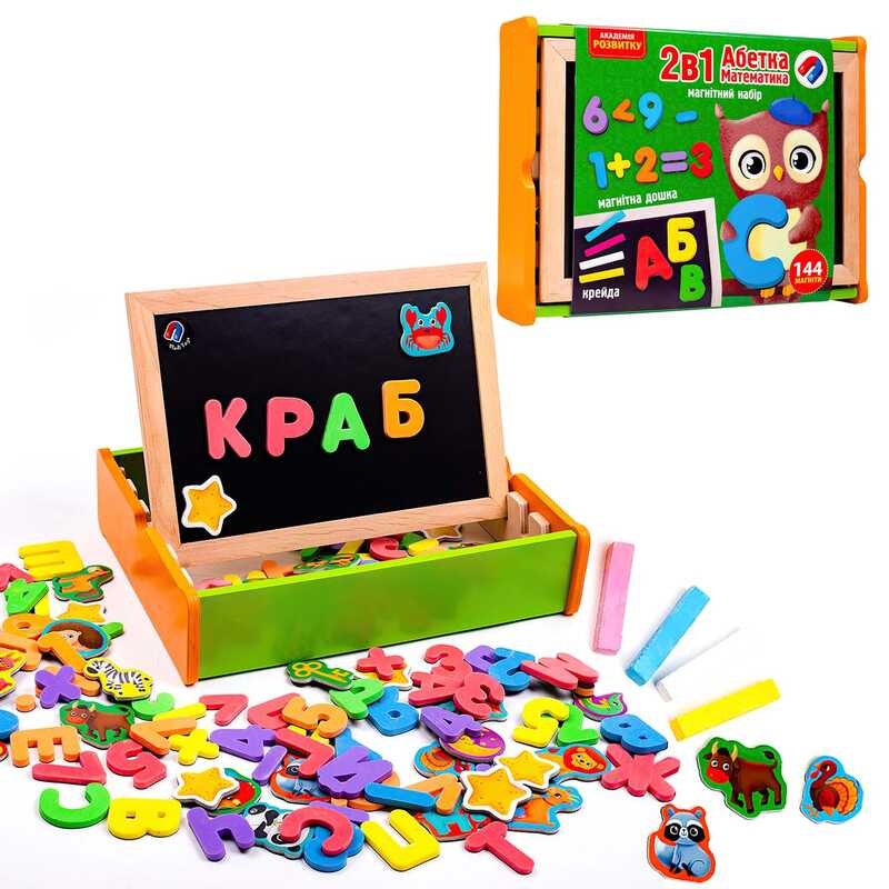 Магнитный набор 2 в 1 "Азбука и математика" в деревянной коробке /укр/ - VT5411-17 Vladi Toys