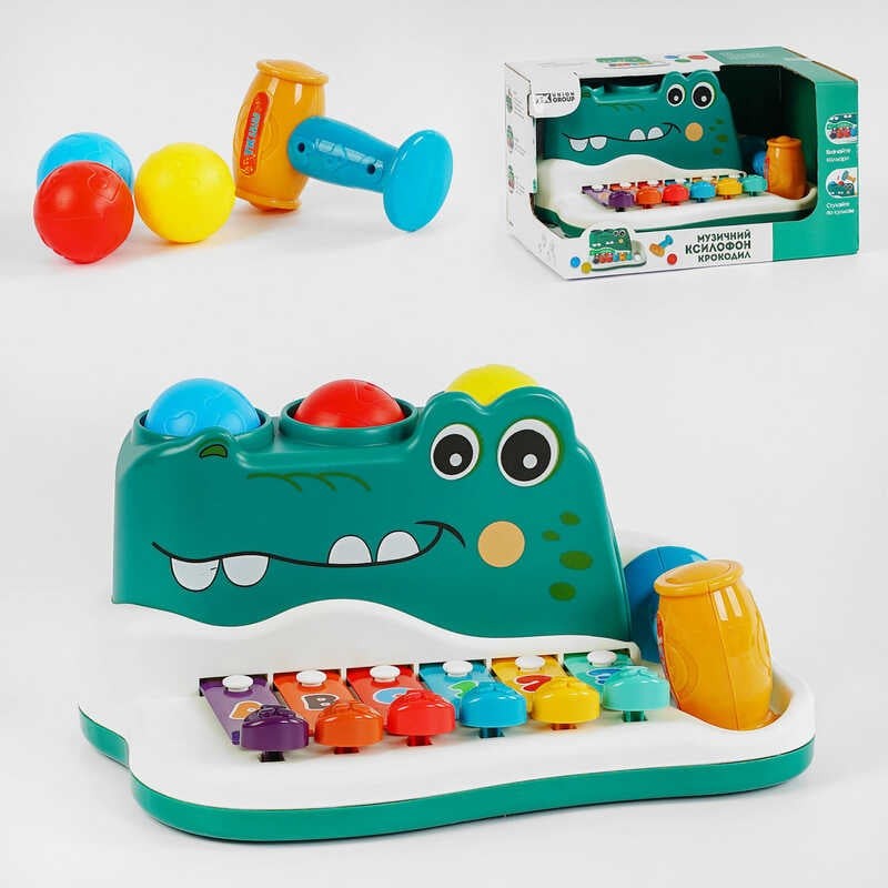 Классический ксилофон, который так нравится малышам, приобрел еще более интересный и оригинальный вид. Знакомый детям функционал дополнился яркой стучалкой, а сам ксилофон теперь воспроизводит ноты без помощи палочек, сменив их на цветные рычаги. Игрушка познакомит ребенка с нотами, научит различать цвета, считать от 1 до 3, станет отличным тренажером для развития мелкой моторики, координации движений и логического мышления. Особенности: – яркий корпус в стильном дизайне; - имеет вид крокодильчика; - игрушка объединяет сразу 2 игры: ксилофон и стукалку; - при попадании шарика на одну из 3-х кнопок, игрушка воспроизводит звук; - в комплекте представлен яркий молоточек; - разноцветные пластины ксилофона украшены буквами и цифрами; - ксилофон воспроизводит ноты при нажатии на рычаги; - игрушка изготовлена из качественных материалов, безопасных для здоровья ребенка.">Классический ксилофон, который так нравится малышам, приобрел еще более интересный и оригинальный вид. Знакомый детям функционал дополнился яркой стучалкой, а сам ксилофон теперь воспроизводит ноты без помощи палочек, сменив их на цветные рычаги. Игрушка познакомит ребенка с нотами, научит различать цвета, считать от 1 до 3, станет отличным тренажером для развития мелкой моторики, координации движений и логического мышления. Особенности: – яркий корпус в стильном дизайне; - имеет вид крокодильчика; - игрушка объединяет сразу 2 игры: ксилофон и стукалку; - при попадании шарика на одну из 3-х кнопок, игрушка воспроизводит звук; - в комплекте представлен яркий молоточек; - разноцветные пластины ксилофона украшены буквами и цифрами; - ксилофон воспроизводит ноты при нажатии на рычаги; - игрушка изготовлена из качественных материалов, безопасных для здоровья ребенка.Характеристики