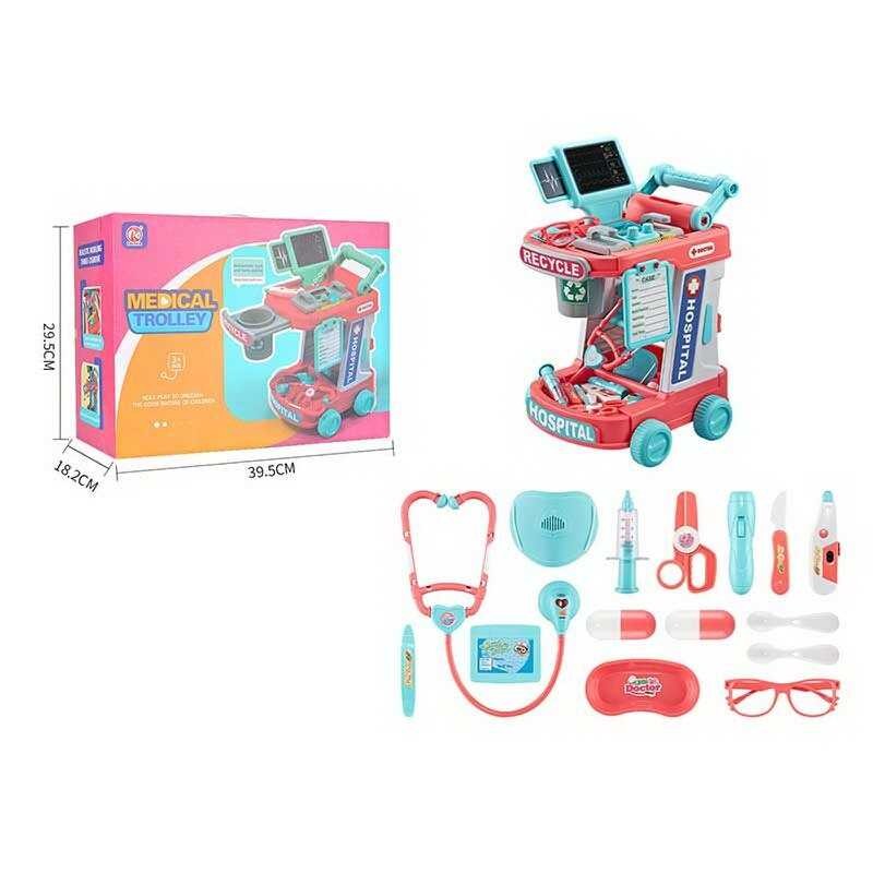 Набор врача RX 690 B (12/2) звук, подсветка, медицинская тележка, дефибриллятор, ЭКГ, стетоскоп