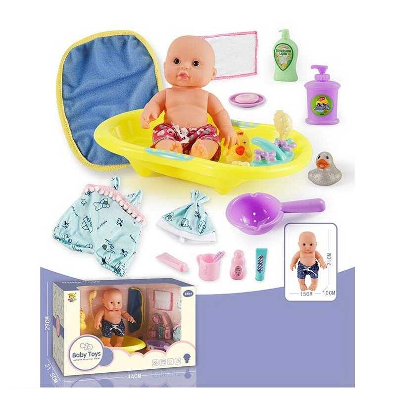 Отличный игрушечный набор, включающий в себя маленькую куклу-пупсика, похожую на младенца, и небольшую ванную. Пупс изготовлен полностью из безопасных..