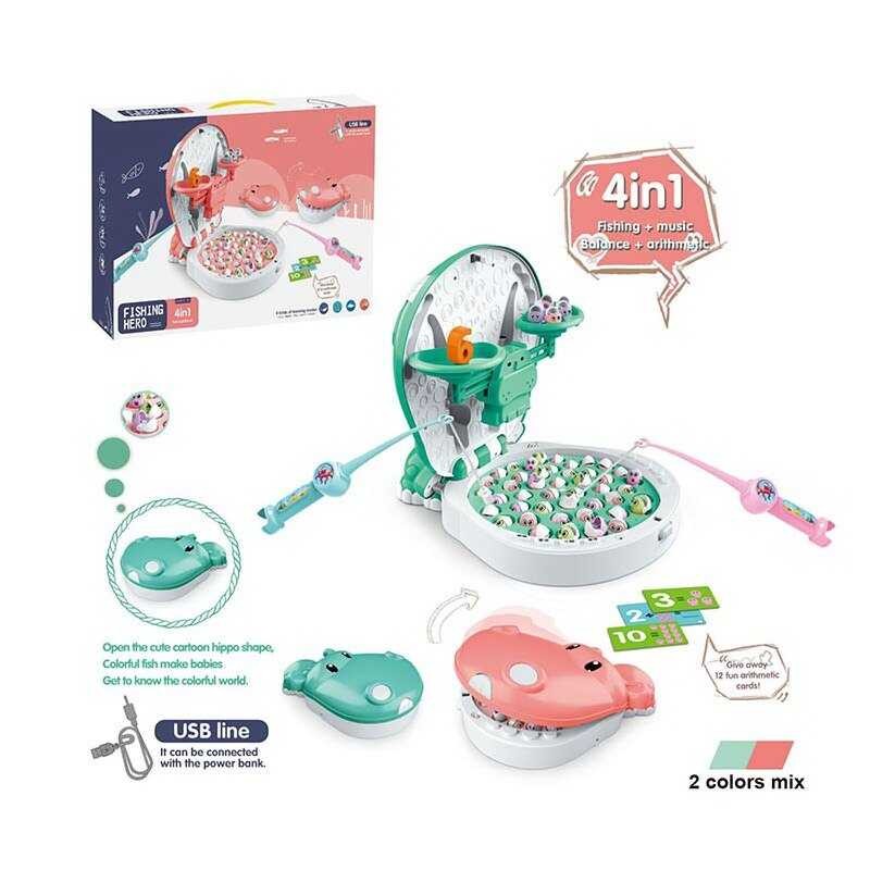 Рыбалка 156-8 C (12) 2 цвета, "Бегемот", песни, звуки, истории на английском, подсветка, балансир