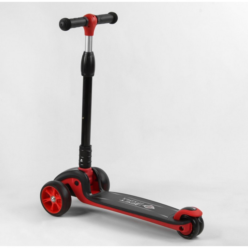 Конструкция самоката состоит из трех колес – два передних и заднее колесо. За счет материала из которого изготовлены колеса данной модели - полиуретан – самокат бесшумный, а езда на нем мягкая и комфортная.