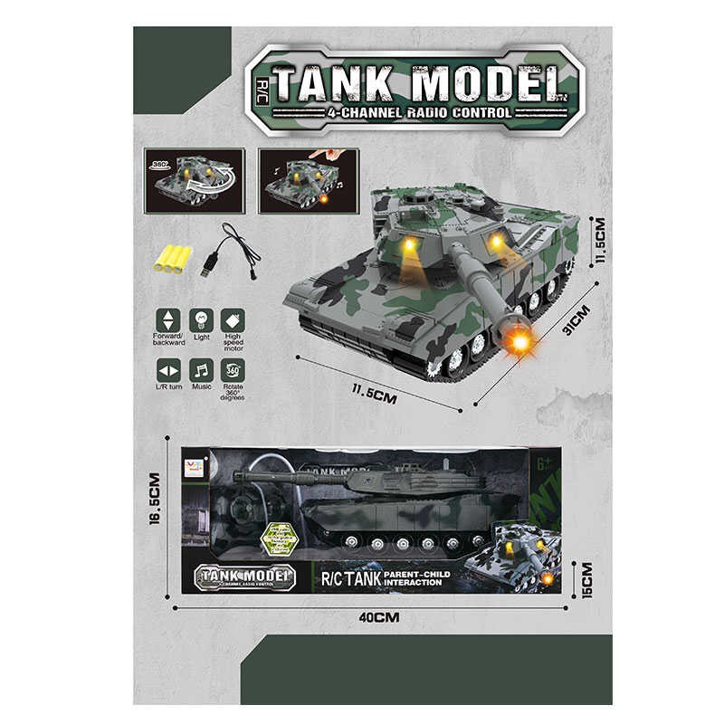 Танк на радиоуправлении 383-62 A (24/2) подсветка, звуки, на батарейках, устройство для перезарядки батареек