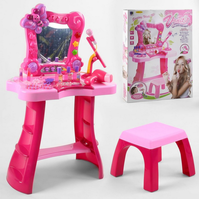 Конструкция трюмо сочетает в себе все необходимое, чтобы с самого утра, юная модница, почувствовала себя настоящей звездой, которая готовится к самому важно выступлению - у себя дома! Трюмо оборудовано эффектным микрофоном, встроенным динамиком, различными музыкальными композициями и конечно же набором для создания причесок, маникюра и легкого, дневного макияжа.